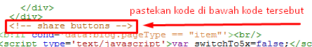 5 : pastekan kode script di bawah tulisan : <!- Share Buttons ->