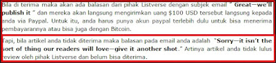 Hanya saja Anda perlu pahami bahwasanya untuk bisa mendapatkan bayaran sebanyak itu tentunya artikel yang anda tulis harus menarik dan dinyatakan diterima oleh pihak situs yang bersedia membeli artikel yang dikirimkan.